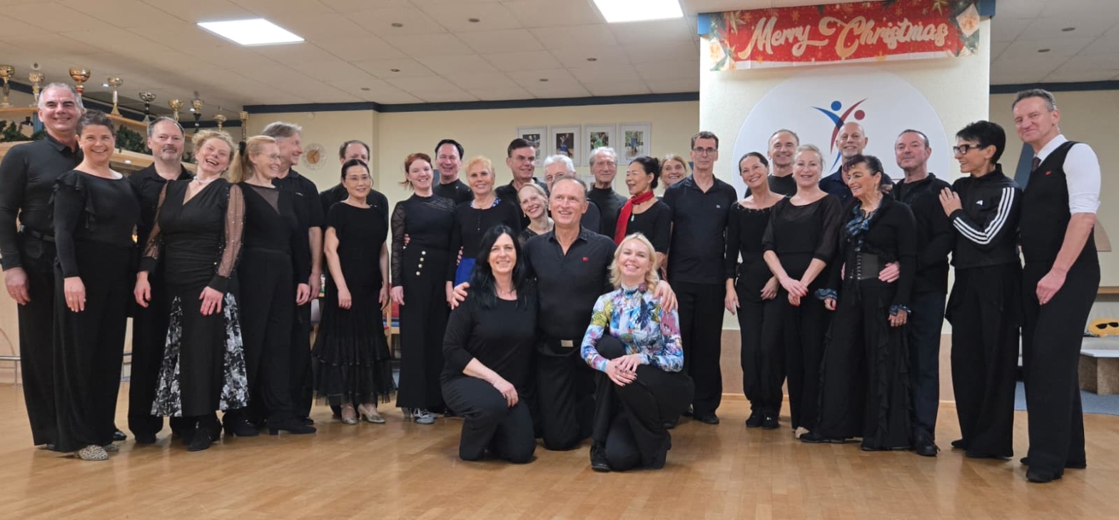 Ein besonderes Highlight war erneut die fast dreistündige Practise mit Warm-up-Runde, Competition-Runde (ein herzliches Dankeschön an Martin Binder fürs Filmen) und anschließendem persönlichen Feedback aller drei Trainer. Unabhängig von Leistungsstufe oder Weltranglistenplatzierung nahmen alle Paare wertvolle neue Erkenntnisse aus der Sicht internationaler Wertungsrichter:innen mit nach Hause.